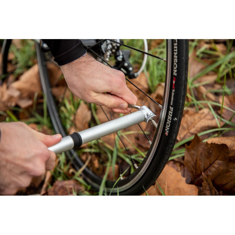 Based on our 100 years of experience, we have specially developed this mini-pump for tyres from 23 to 32 mm wide. Its 100% aluminium construction makes it the perfect ally for your road or triathlon bikes. Discreet, the Zefal Road Mini can either be mounted on the frame, thanks to the clip provided, or carried in its pocket. The Road Mini is the most efficient road pump. If you want a more compact pump that will allow you to reach the desired pressure but with more pump strokes, choose the Zefal Road Mini