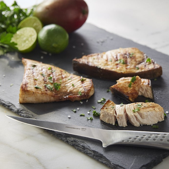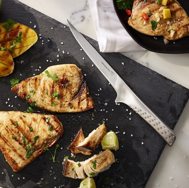 Pave the way for perfection before you light your barbecue. With its sleek design and stainless steel composition, the exclusive file knife trims the meat or fillets the fish quickly, easily and efficiently.