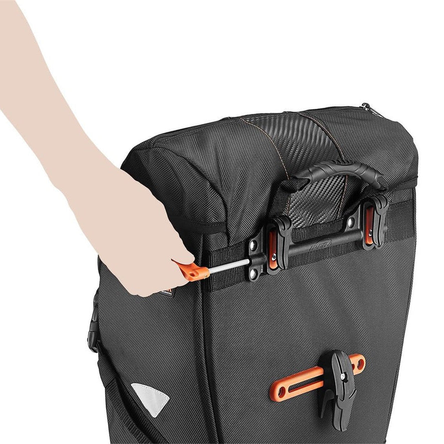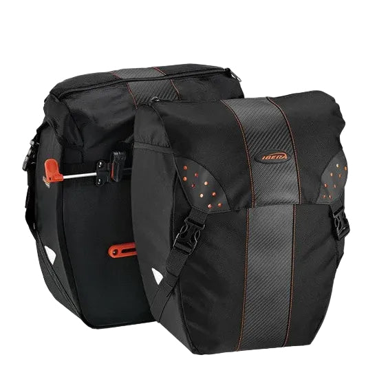 Features Panniers clip on securely in seconds–no straps required. Can be used as a set or singularly. If used with Ibera PakRak Touring Carrier Plus+, other top-mounting PakRak bags can be used simultaneously. 2 large reinforced compartments, 2 side pockets, Hand-carry strap, Reflective trim.