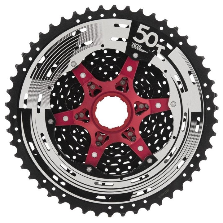 Sunrace alloy sprocket MTB cassette for 11-speed drivetrain bicycles.