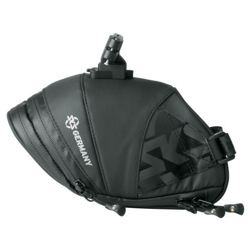 Robust and durable. Durable material made from rubberised, water-repellent fabric make the EXPLORER bicycle bag a must for every mountain biker. Reflective elements like the SKS logo add safety. Besides providing plenty of space for tools, replacement tubes, and personal items, this bag features a laminated zipper with ergonomic easy-zip, secure inside pocket, and orange-coloured lining to make finding items easier.