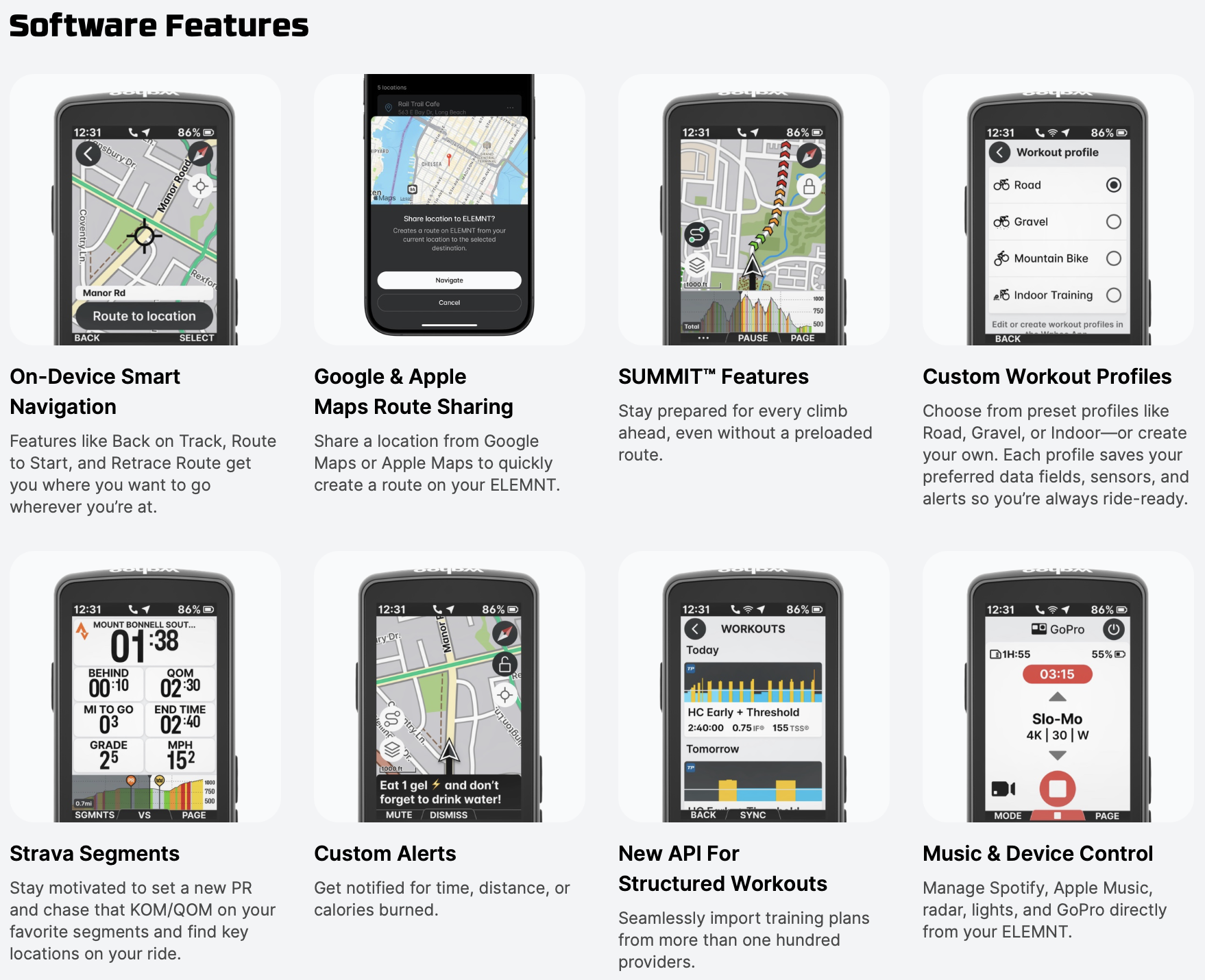 - Pasiruošęs važiavimui per sekundes: Naujoje Ready-To-Ride panelėje greitai nustatykite veiklą, maršrutą ir treniruotę. Susieti jutikliai, akumuliatoriaus būsena ir pagrindiniai rodikliai matomi iš karto.