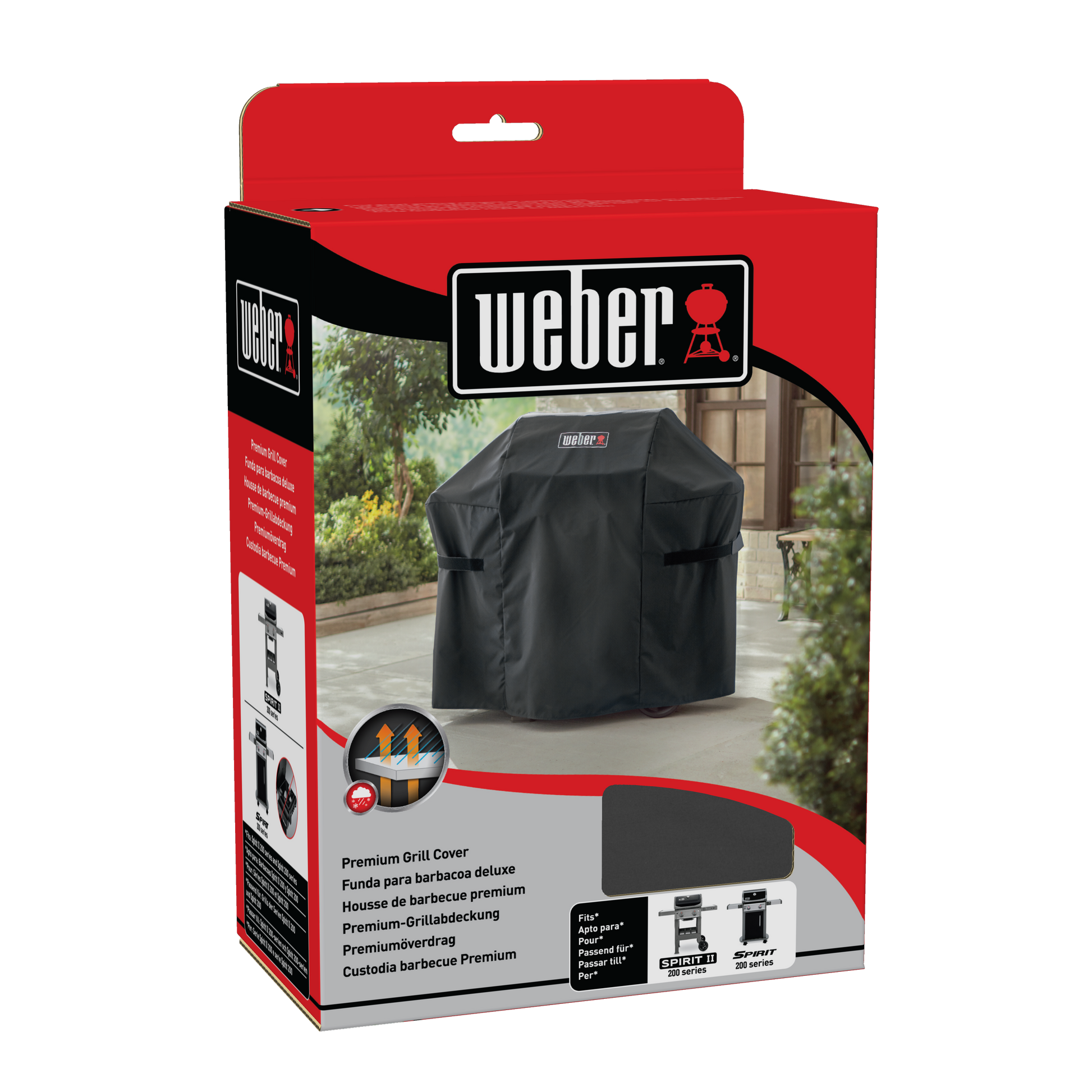 WEBER Premium uždangalas Spirit II 200 ir Spirit E-210 (išskyrus EO-210), modelis 7182, suteikia ilgalaikę apsaugą nuo lietaus, sniego, saulės ir purvo. Tvirtas, kvėpuojantis ir vandeniui atsparus poliesteris išlaiko grilį švarų ir saugų. UV apsauga mažina blukimą, o tvirtinimo dirželiai užtikrina stabilų laikymą net esant vėjui.
