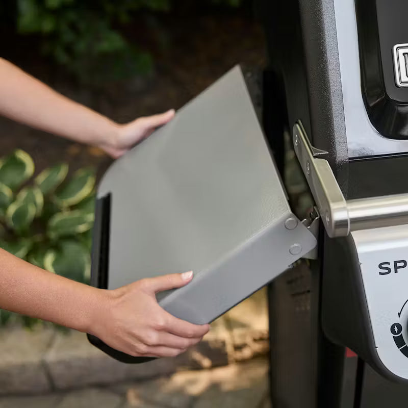 Weber Works™ šoniniai bėgeliai laiko pritvirtinamus priedus (parduodamus atskirai), tokius kaip butelių laikiklis, papildomi įrankių kabliukai ir lanksti apšvietimo sistema, kad šoninis stalas liktų laisvas maisto ruošimui ir patiekimui.