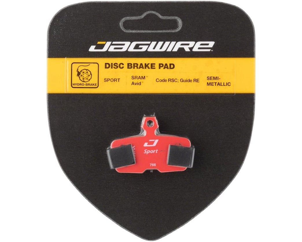 Jagwire Sport pusmetāla disku bremžu kluči ir lielisks OEM uzlabojums. Tiem ir augstas veiktspējas daļēji metālisks savienojums, kas apvieno sveķu paliktņa zemo trokšņa līmeni ar metāla paliktņa izturību. Uzmontēti uz tērauda pamatnes plāksnes, tie ir lielisks universāli kluči.