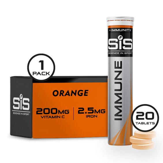 SIS Immune tabletes palīdz saglabāt sportista imūnsistēmu sveiku un veselu, nodarbību laikā un pēc nodarbībām. Piemetiet tableti dzeramajam ūdenim un uzņemiet nepieciešamos vitamīnus (C, dzelzs), lai atbalstītu savu imūnsistēmu pēc nogurdinošiem treniņiem/sacīkstēm.