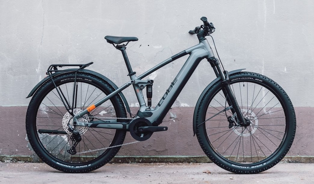 The right accessories can make a bike complete, and with the Stereo Hybrid 120 Pro 750 Allroad we've included a complete set. There's a luggage carrier ready to take on a weekend tour or the weekday commute. Mudguards to help keep mud and water at bay. And a kickstand and lights, too. With smooth RockShox suspension front and rear and our renowned Comfort Geometry, it's everything you need to stay comfortable on any journey. Pedal assistance is provided by a powerful Bosch CX drive with new Purion display and a high-capacity 750Wh battery, via easy-to-use Shimano Deore 1x12 gears. And grippy Schwalbe 2.6in tyres plus powerful four-piston Shimano hydraulic disc brakes ensure you'll be safe, whatever the conditions. It's ready for anything.